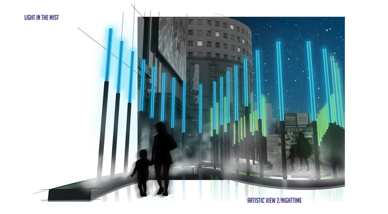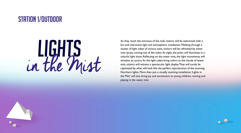 The main component to the "Arctic Lights" campaign is the element of light. The element of the gradient is inspired by the aurora lights while using a cool and fresh color palette, which is repeated throughout as a graphic element. Each installation was created with the intent of personal interaction between the individual and the space.