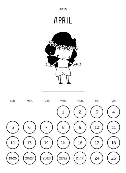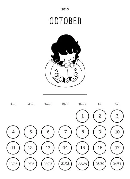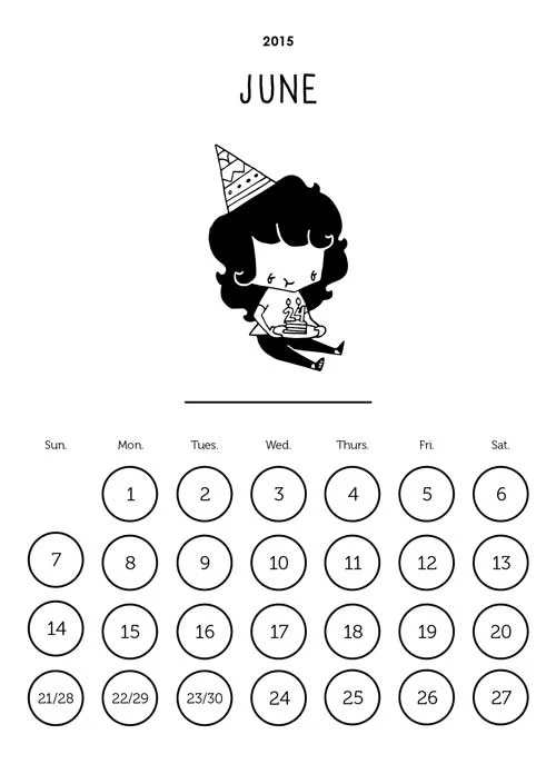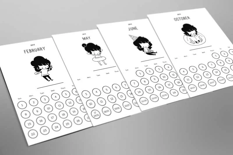 Each month has a different illustration reflecting the month. The physical version is letterpresses with black ink onto white card stock paper.